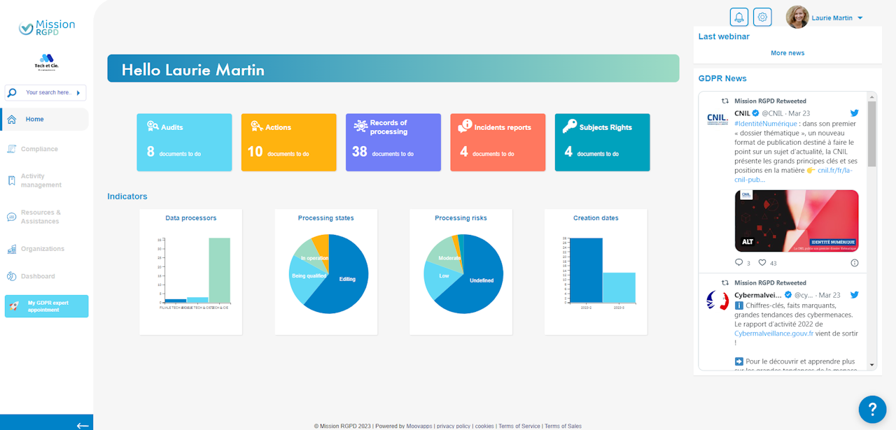 To add a logo to your organization, you must have the "Admin" role on the Mission RGPD platform. Then, go to the "Directory Administration" tab, which you will find on the left side of your user profile (next to the cogwheel).