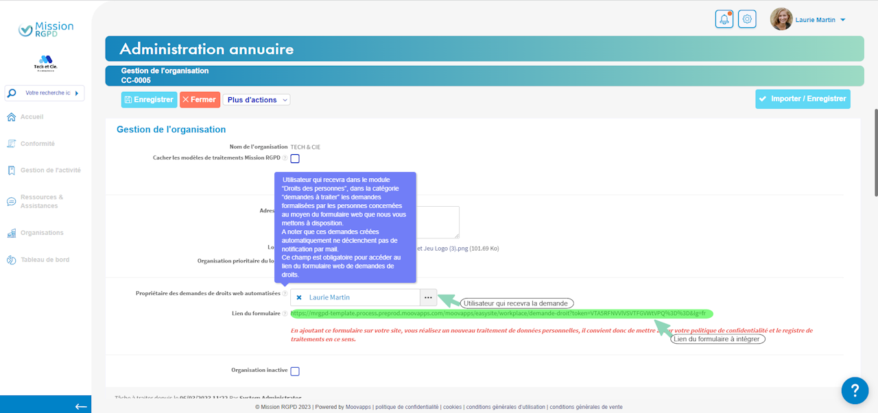 Pour chaque demande effectuée via ce formulaire en ligne, la demande sera automatiquement importée au sein de l’application “Droits des personnes” de la plateforme, et prête à être traitée.