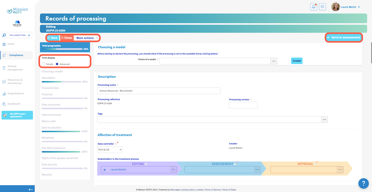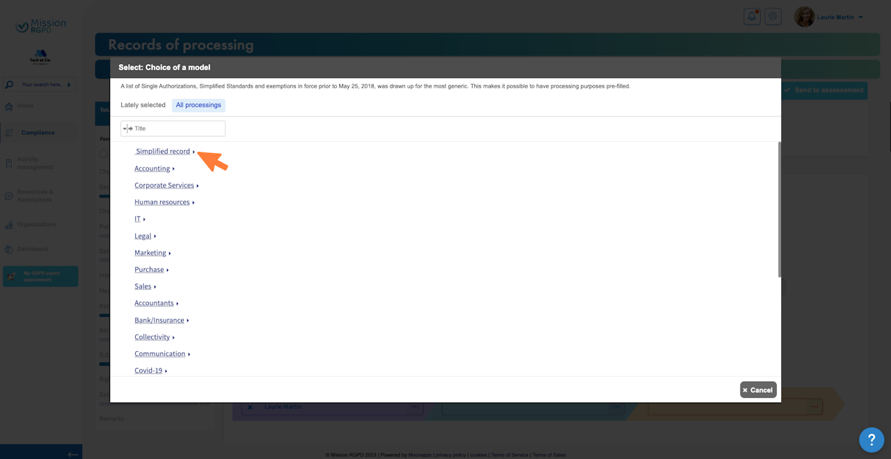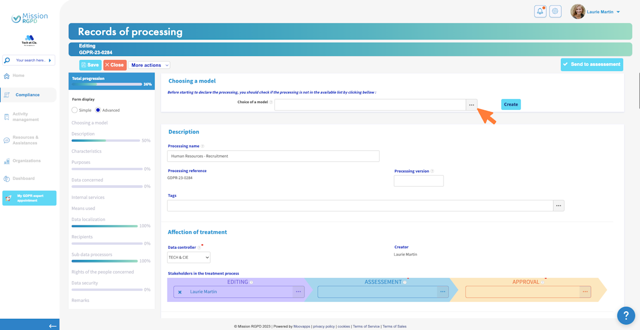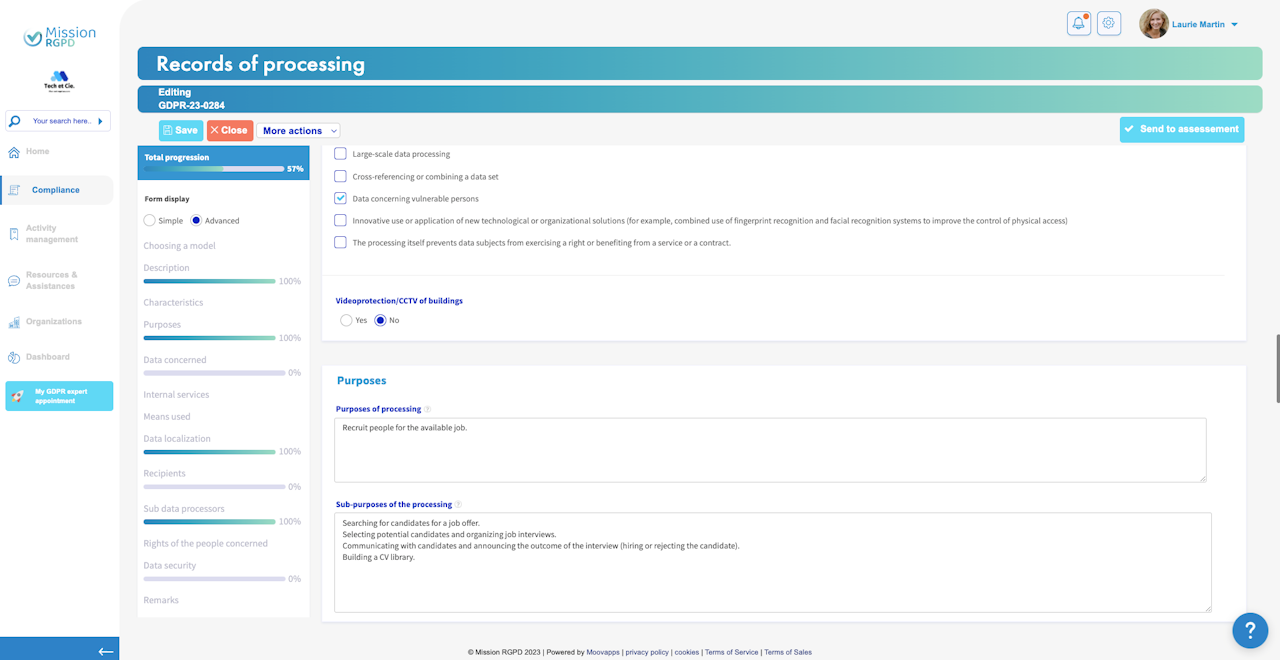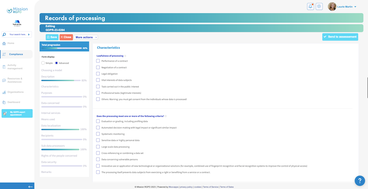 Mission RGPD has developed a set of processing record templates. You can choose a template that matches your needs, and Mission RGPD will pre-fill your form. All you have to do is complete and/or customize it according to your requirements.