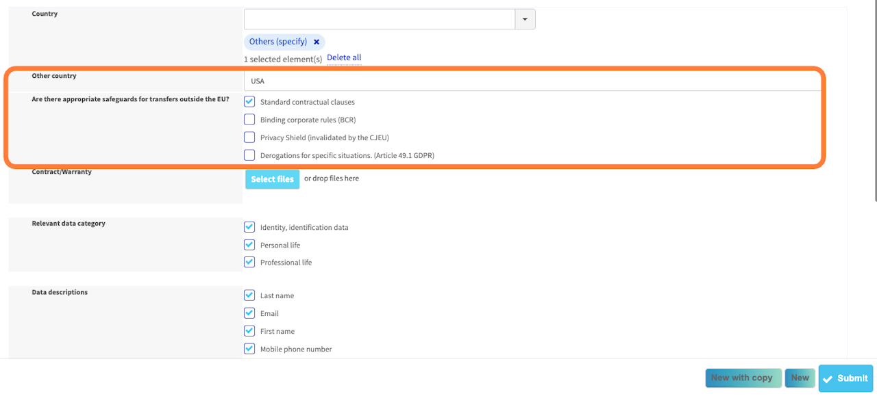 (Optinal) In both cases, you can document which data category the recipients, whether internal or external, have access to. You can also specify why these recipients have access to the data.