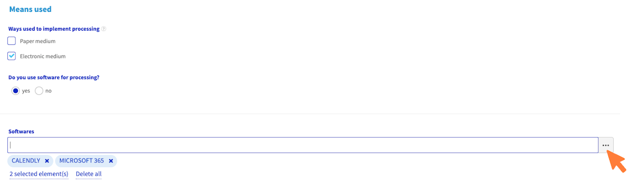 Choose "Electronic" if you use an electronic device, such as a software, to process the data.