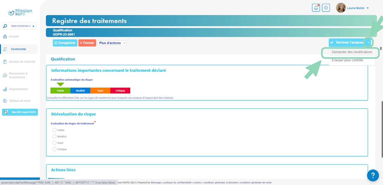 To make modifications during the qualification stage, you need to click on "Request Changes" located at the top right corner.