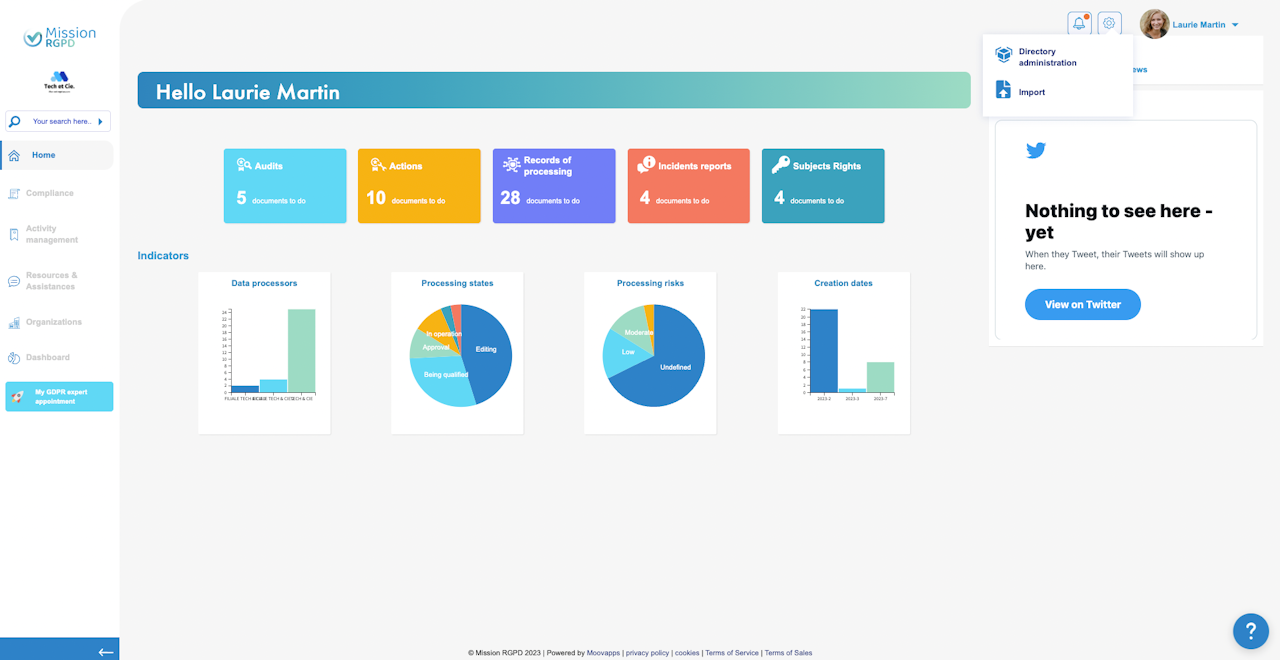 L'écosystème regroupe les listes de vos logiciels utilisés, sous-traitants, populations visées, co-responsables de traitement, destinataires externes et donneurs d'ordre. Chaque catégorie correspond à une liste de données normées qui vous permettent d'alimenter vos registres et autres applications de la plateforme.